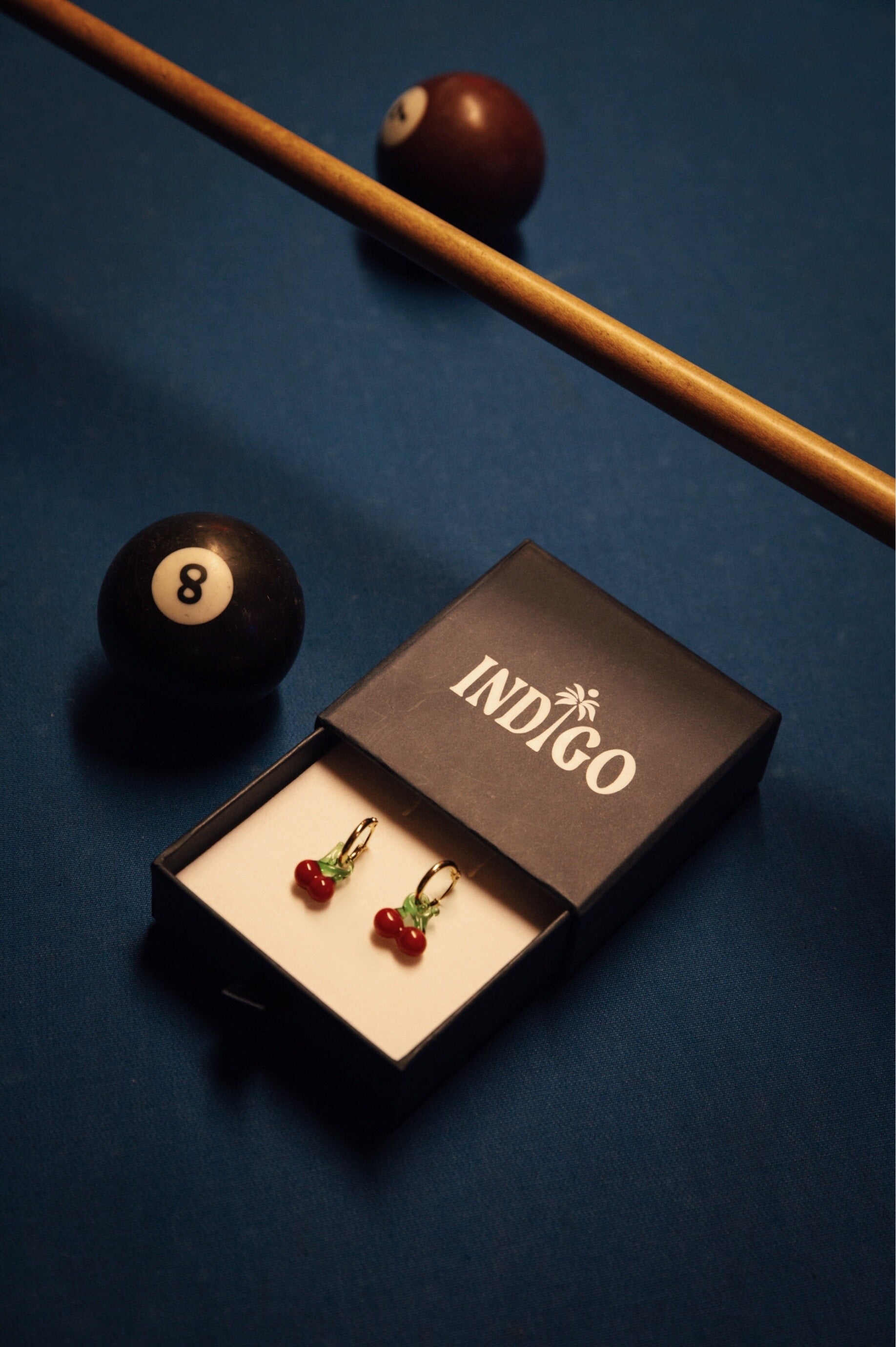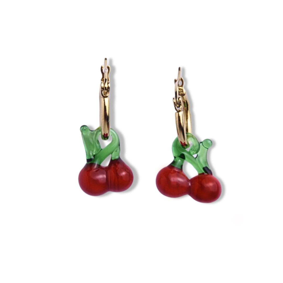 Elevate your style and stand out from the crowd with these unique and trendy earrings. Crafted from handmade, blown glass cherry charms that are designed to add a pop of color to any look. Wear on their own or with your favorite Indigo earring stack.